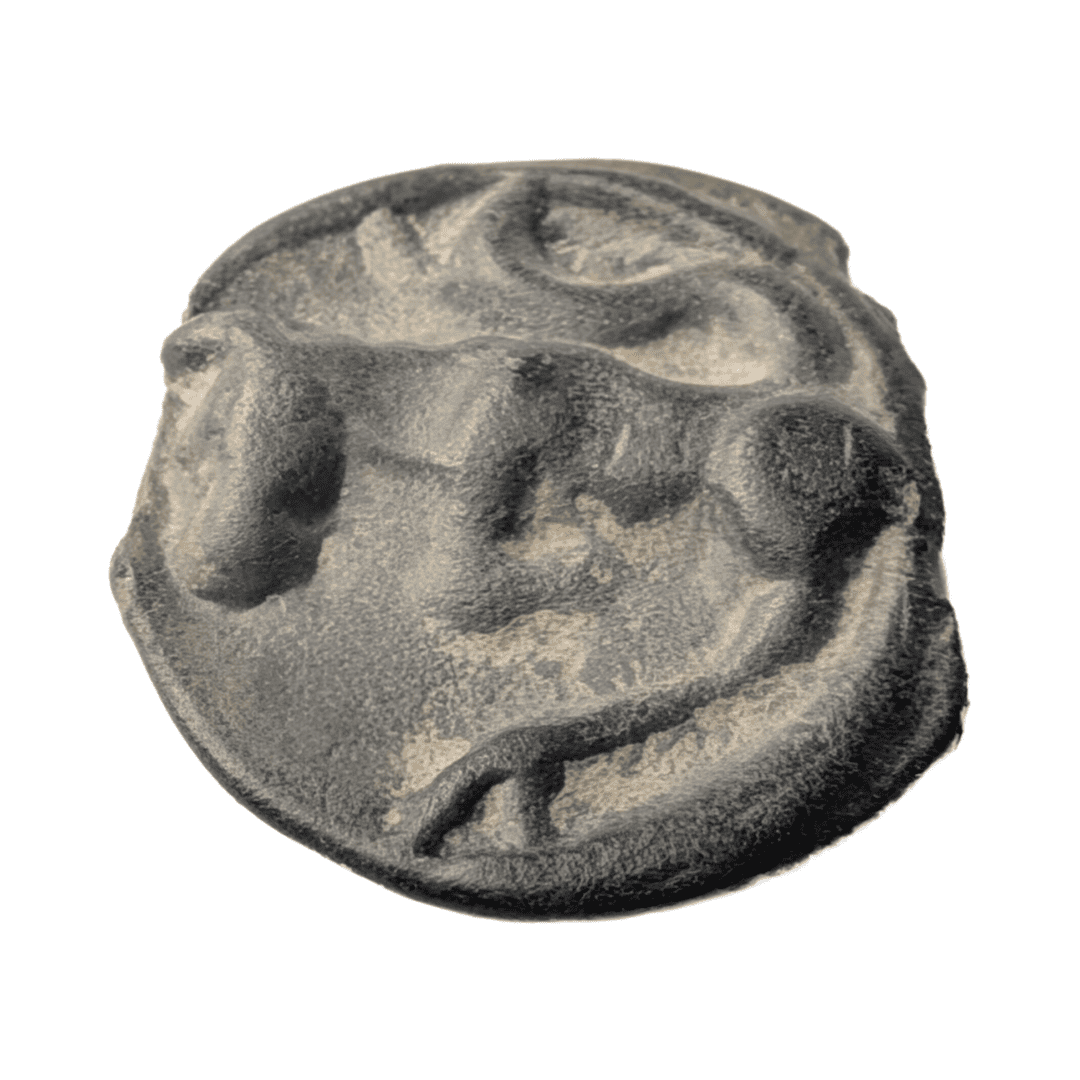 Description avers : Tête stylisée tournée à gauche, avec l’œil en creux.